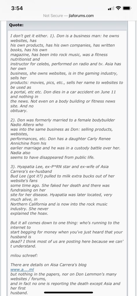Before you begin reading, please take note of this. My husband was Donald E. Lemmon Jr. He was the Author of Don Lemmon’s Know How: The Truth About Exercise & Nutrition. Here is an excerpt from his book that references my existence and our marriage.